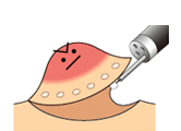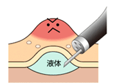 粘膜下層に薬剤を注入して浮かせた状態にします。