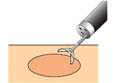 切り取ったあとの表面に止血処置を施して終了です。切り取った病変部は病理検査に出すため回収してきます。