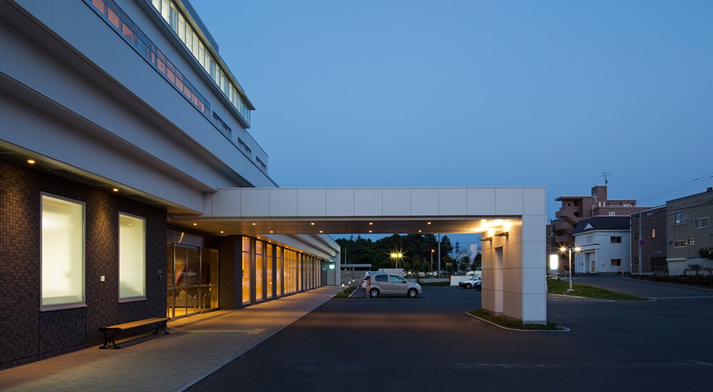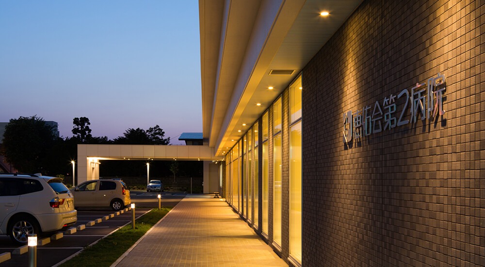 建物外観はさわやかなホワイトを基調としました。一般社団法人照明学会、平成24年照明普及賞(Good lightning Award)。