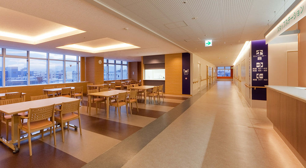 また「発熱ガラス」を医療施設で初めて大々的に採用し窓際空間の環境向上を図りました。