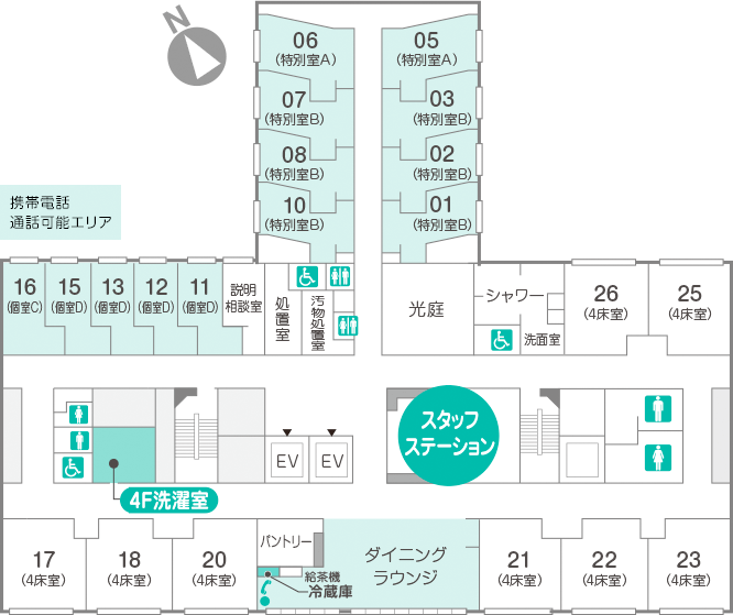 各階45床で計90床となっており、プライバシーに配慮し個室率28.9%としています。