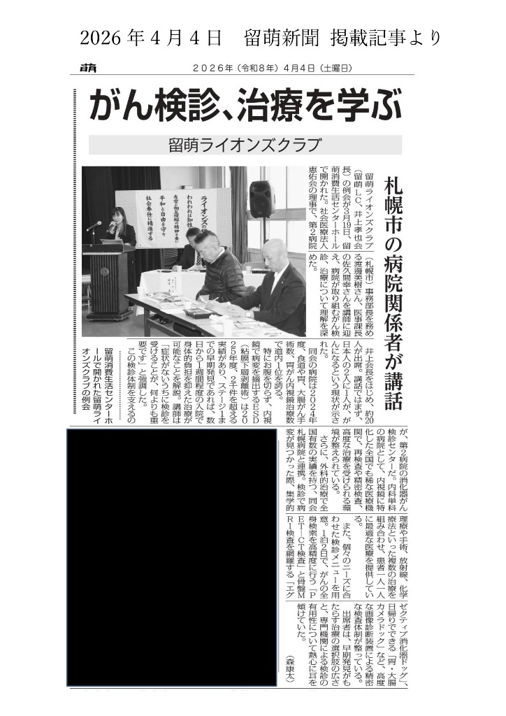 当院のがん検診、治療についての取り組みが留萌新聞に掲載されました。
