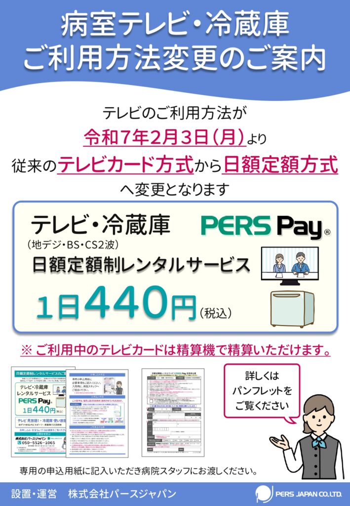 令和7年2月3日より、テレビカード式から日額定額方式へ変更となります。