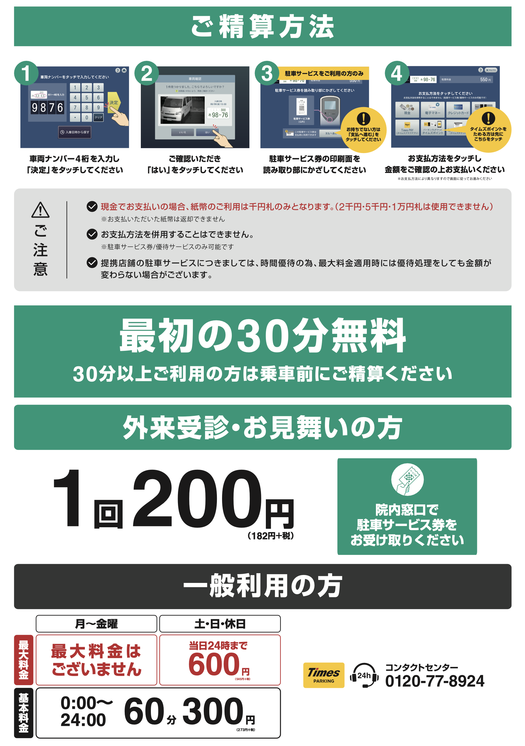 2025年10月1日より病院駐車場運営・管理をタイムズ24株式会社が執り行うことになりました。